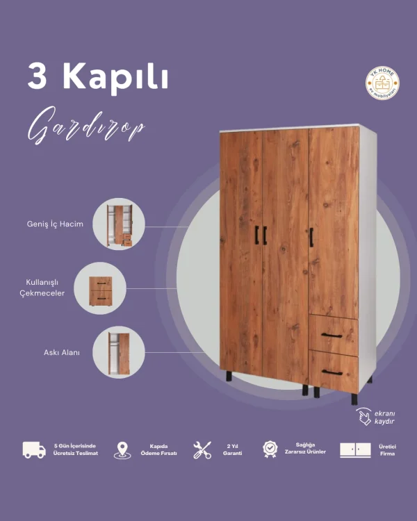 ✅ Kullanımı kolay ve dayanıklı malzemelerden üretilmiştir. Geniş iç hacmi sayesinde eşyalarınızı düzenli bir şekilde saklamanızı sağlar. Pratik özellikleri ile size zaman kazandırırken, şık tasarımıyla da evinize modern bir görünüm katmaktadır.