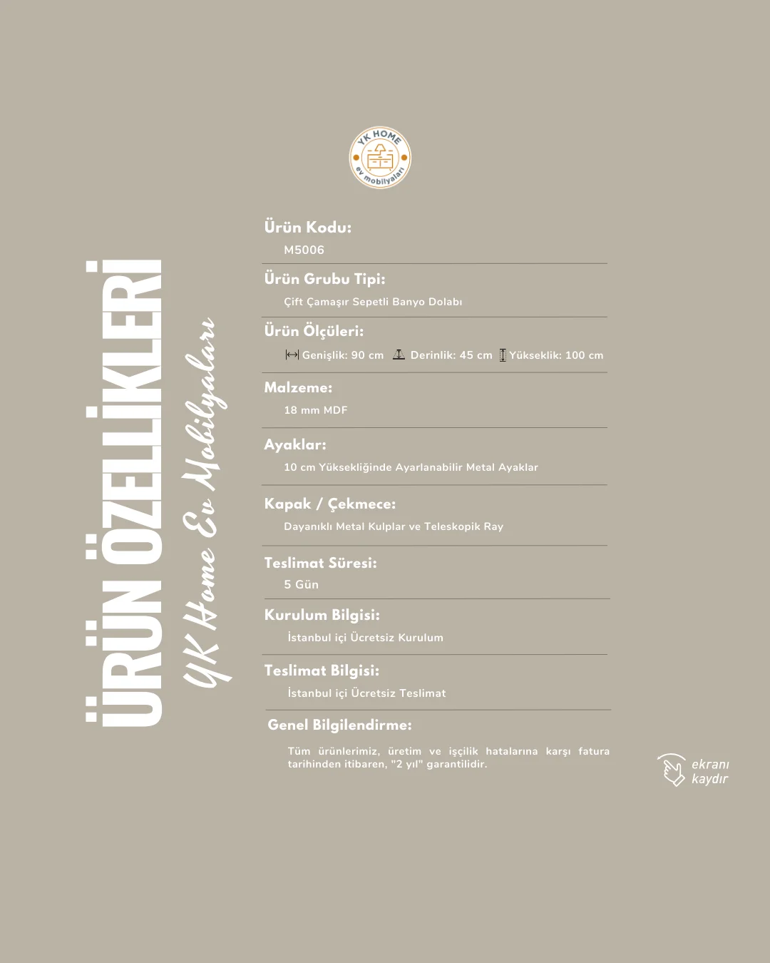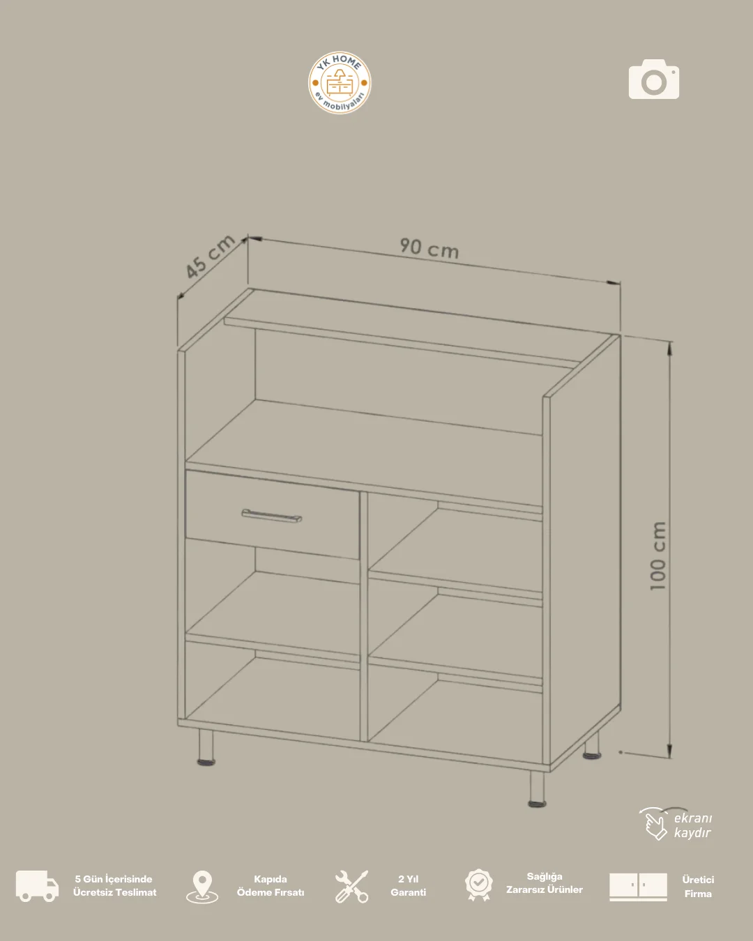 📐 Genişlik: 90 cm – Derinlik: 45 cm – Yükseklik: 100 cm