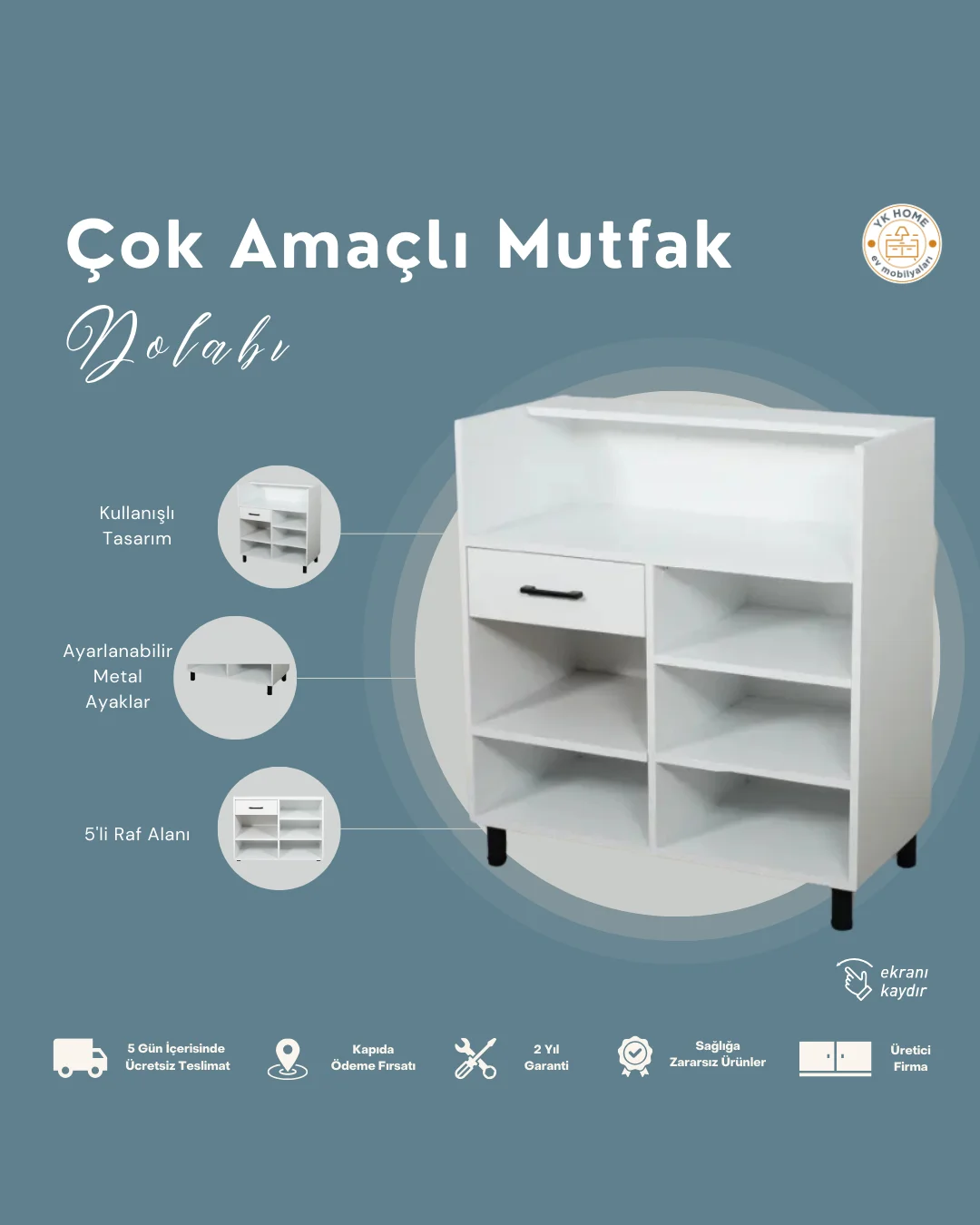 ✅ Kullanımı kolay ve dayanıklı malzemelerden üretilmiştir. Geniş iç hacmi sayesinde mutfak ürünlerinizi düzenli bir şekilde saklamanızı sağlar. Pratik özellikleri ile size zaman kazandırırken, şık tasarımıyla da odanıza modern bir görünüm katmaktadır.